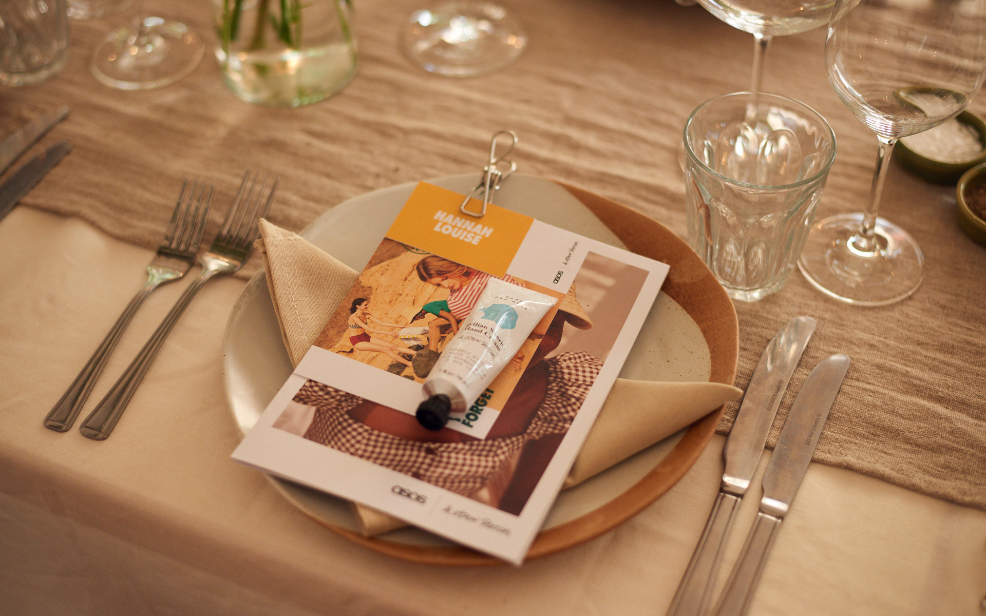 We worked with a set designer for the event itself, selecting and dressing the space - from the plates to the flowers, and I delivered signage, postcards, posters, menus and name tags.